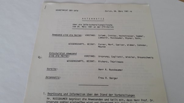 Die Vorarbeiten zur Gründung der SATW dauerten drei Jahre, in denen einige Sitzungen stattfanden.