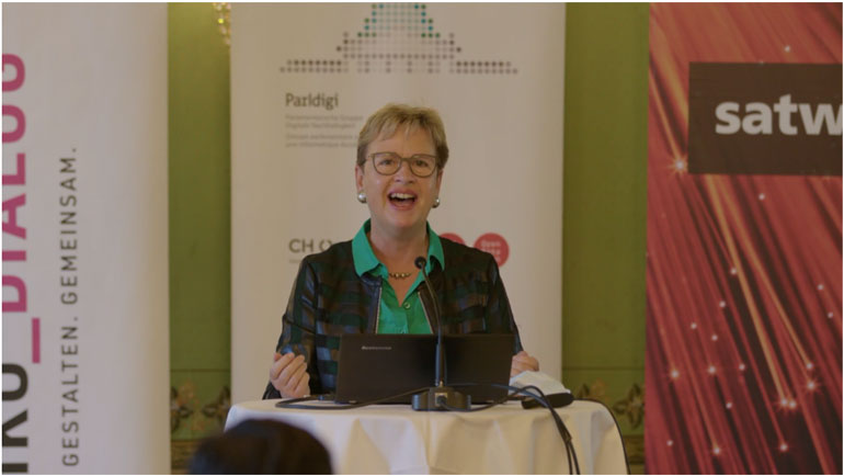 Das Parlamentarierdinner wurde Pandemie-bedingt in hybrider Form durchgeführt– mit 20 Gästen vor Ort und 30 online. Edith Graf-Litscher, Nationalrätin und Co-Präsidentin von Parldigi, der Parlamentarischen Gruppe Digitale Nachhaltigkeit, begrüsste das Publikum aus Politik und Bundesverwaltung sowie weitere Entscheidungsträger. Künstliche Intelligenz (KI) hält immer stärkeren Einzug in unser tägliches Leben. Sie schafft unzählig viele neue Möglichkeiten und stellt die Gesellschaft zugleich vor grosse Herausforderungen. Insbesondere die Politik und Regulatoren sind in naher Zukunft gefordert.