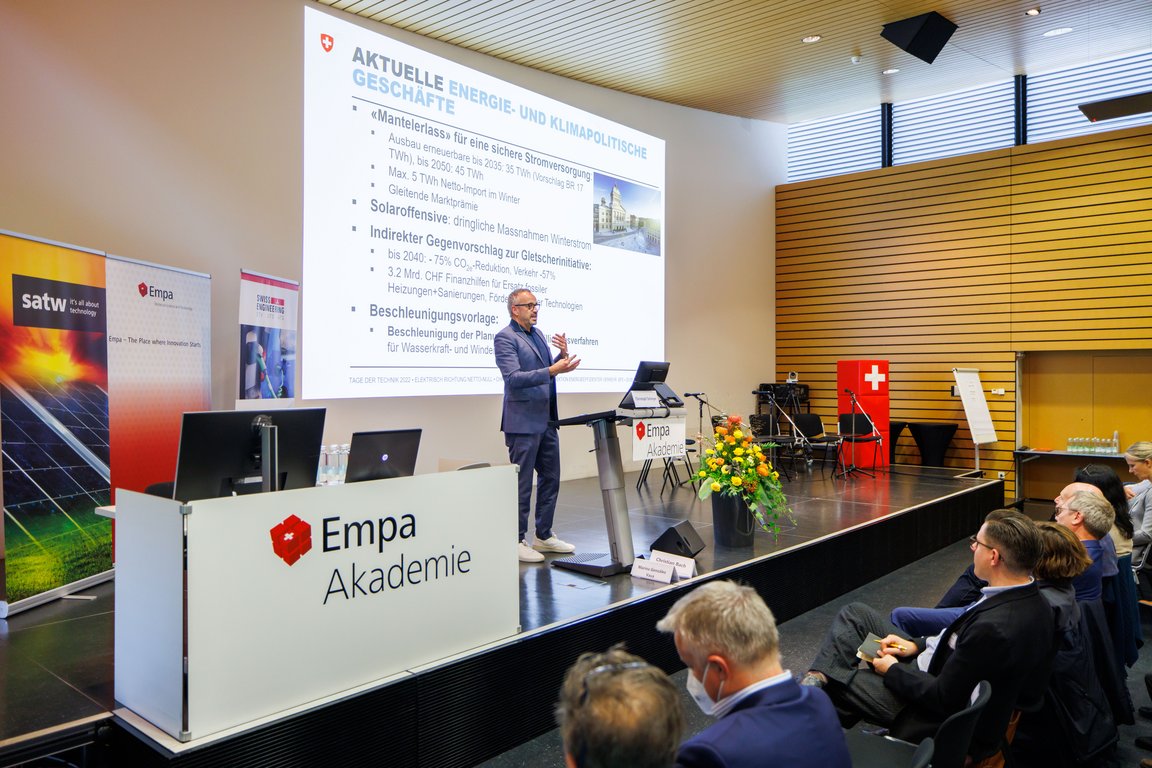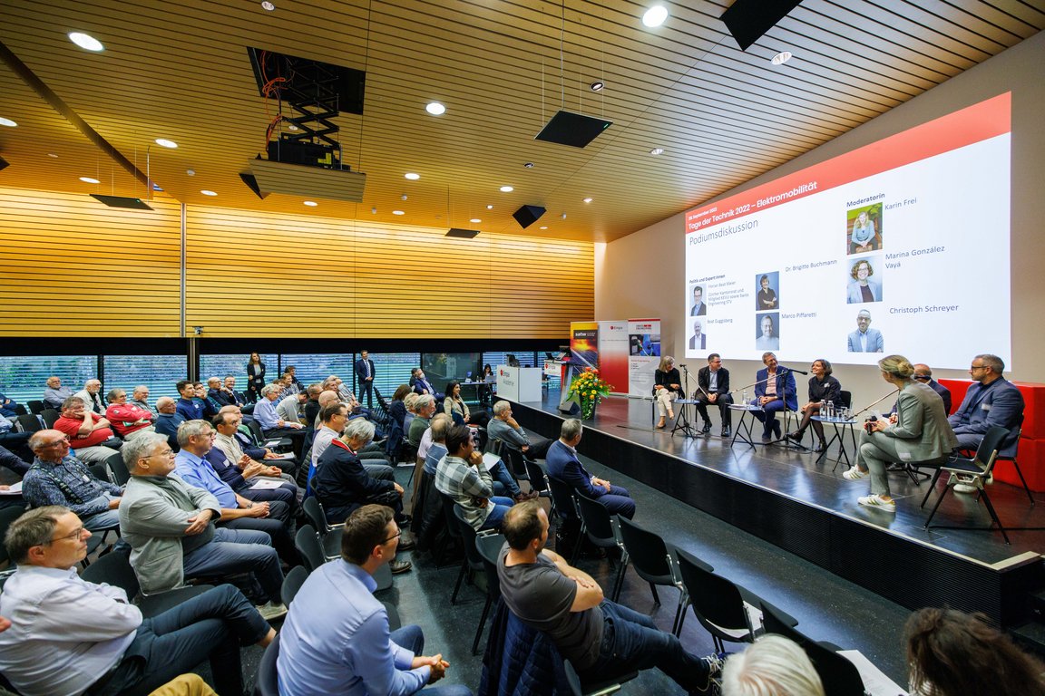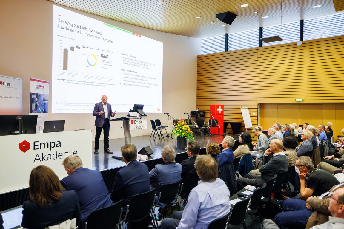 Energie ist eine unverzichtbare Ressource unseres Lebens; die Notwendigkeit, den Klimawandel zu bremsen ebenso. Mehr als ein Drittel des gesamten Energieverbrauchs in der Schweiz geht auf das Konto von Personen- und Güterverkehr. Welche Mobilitätsoptionen gibt es und wie wirken sich diese auf die CO2-Emissionen aus? Welchen Beitrag leistet die Elektrifizierung von Fahrzeugen zur Dekarbonisierung des Mobilitätssektors? Sind Elektrofahrzeuge Fluch oder Segen für Netzbetreiber? Wie funktioniert Vehicle-to-Grid (V2G) mit batterieelektrischen Fahrzeugen und welche Rolle nimmt dieses Konzept im Rahmen der Transformation unseres Energie- und Stromsystems ein? Das waren die Themen der vielfältigen Vorträge an der Veranstaltung vom 29. September an der Empa-Akademie in Dübendorf.